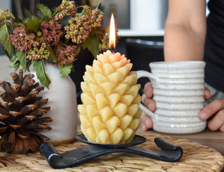 The harvesting of beeswax does not require dedicated land use and it supports beekeepers and pollinator populations. Beeswax requires no hydrogenation or chemical processing and is inherently long and clean burning. And with no additives or artificial fragrances, beeswax is an excellent candle alternative to those concerned about allergens and toxins in their homes.